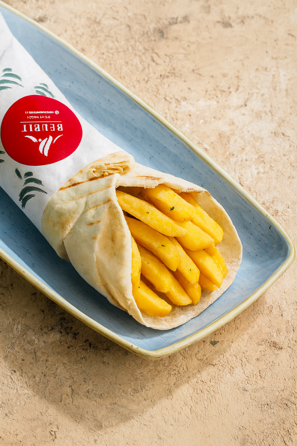 Sandwich frites CHF 9.50 Sandwich battata (pommes frites préparées à la libanaise), salade caleslaw, cornichons.