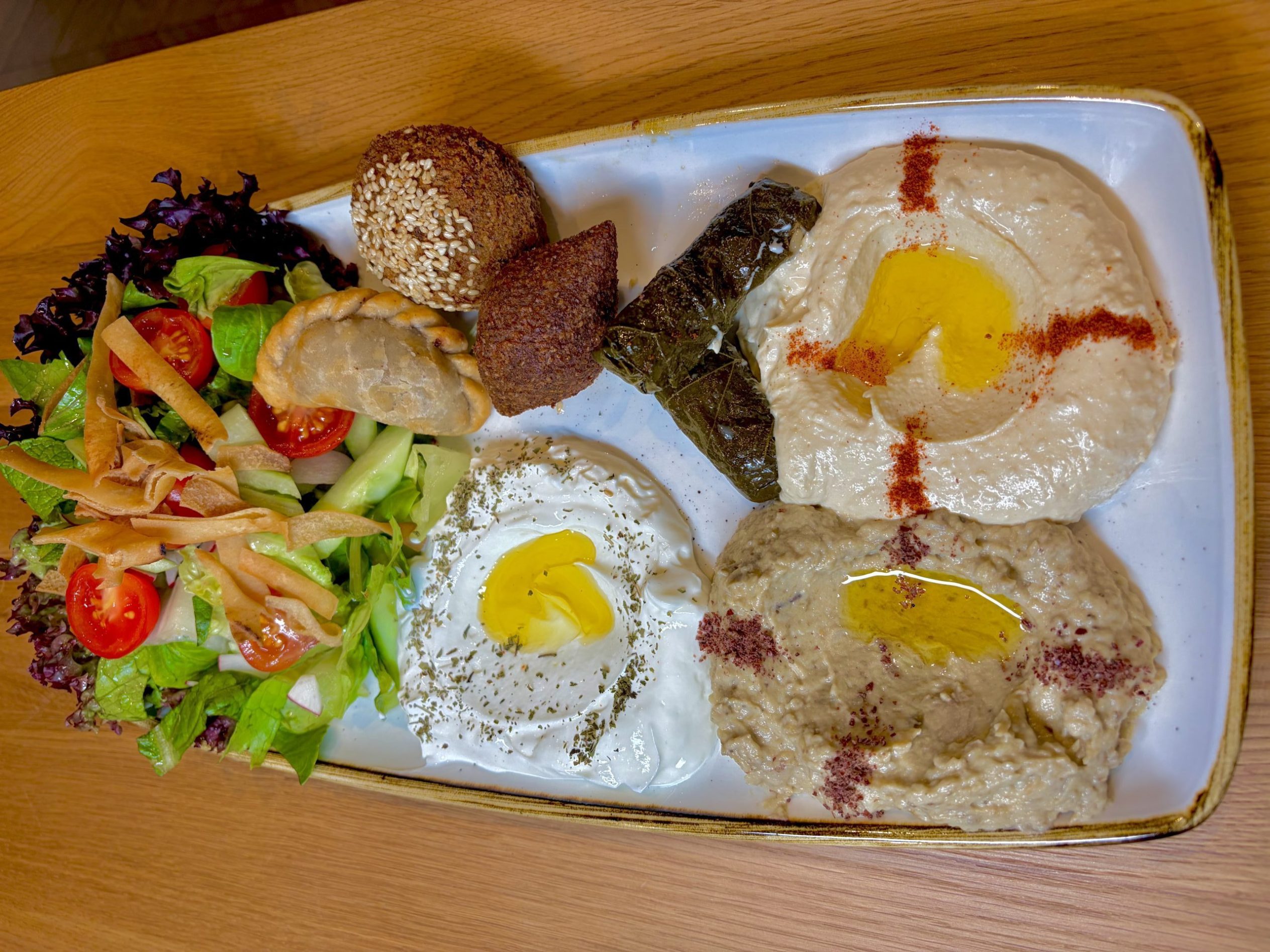 19.Dec By beirutbadmin Assiette Libanaise Assiette Libanaise CHF 24 CHF / 18 CHF “étudiants” Assiette composée de 8 mets : falafel, kebbé, sambousik, feuilles de vigne, hommous, moutabale, labneh et fattouche, pain libanais. Share: