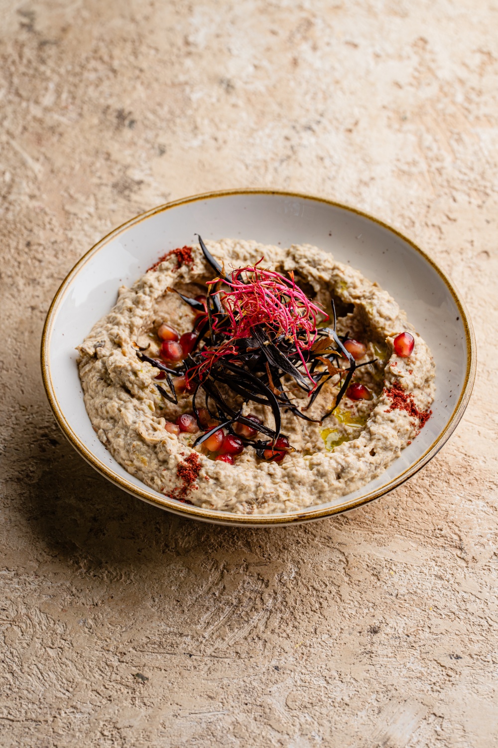Purée d'aubergines, crème de sésame, jus de citron frais, huile d'olive.